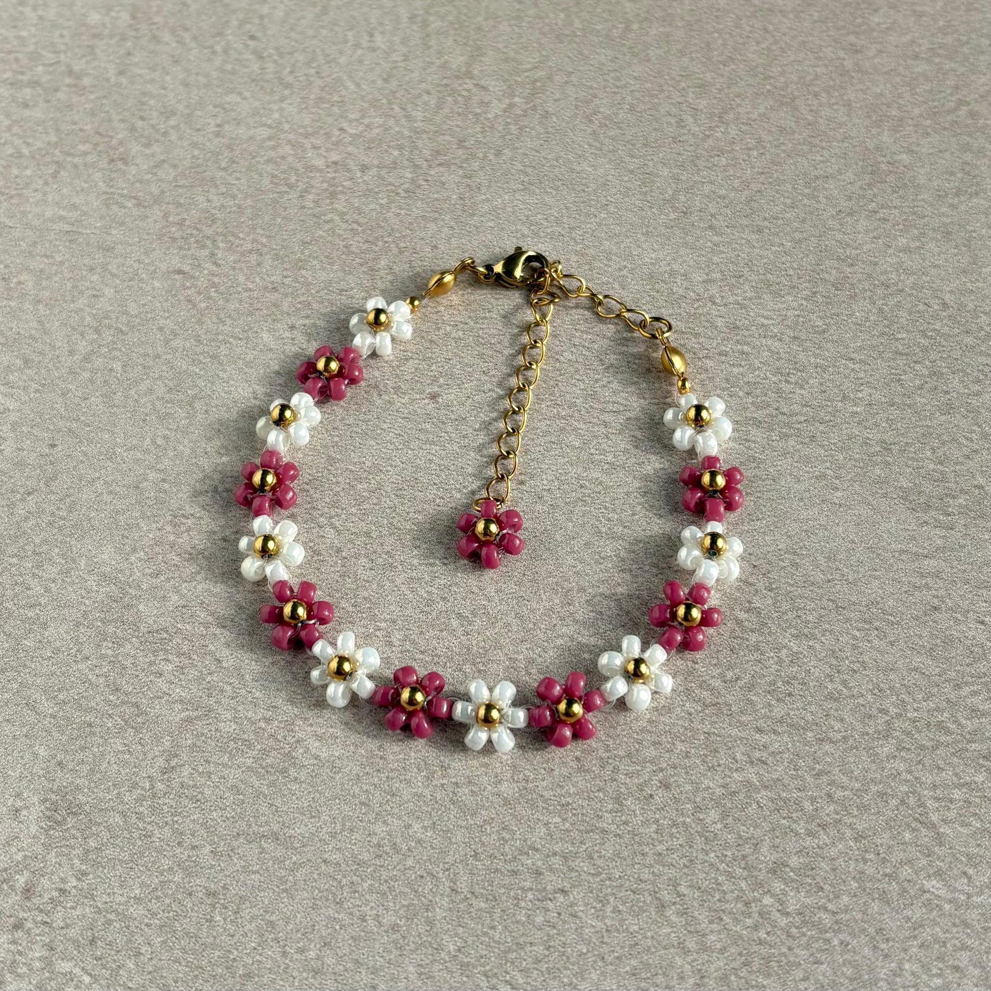 Ce bracelet Mia, met en valeur des fleurs en perles Miyuki aux couleurs chaudes et automnales.
