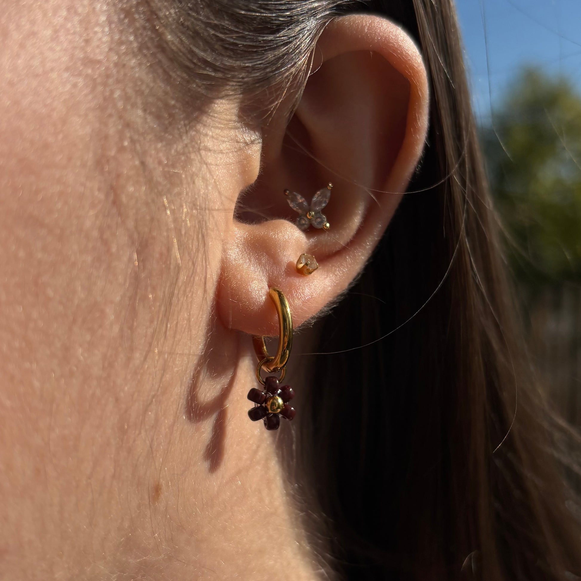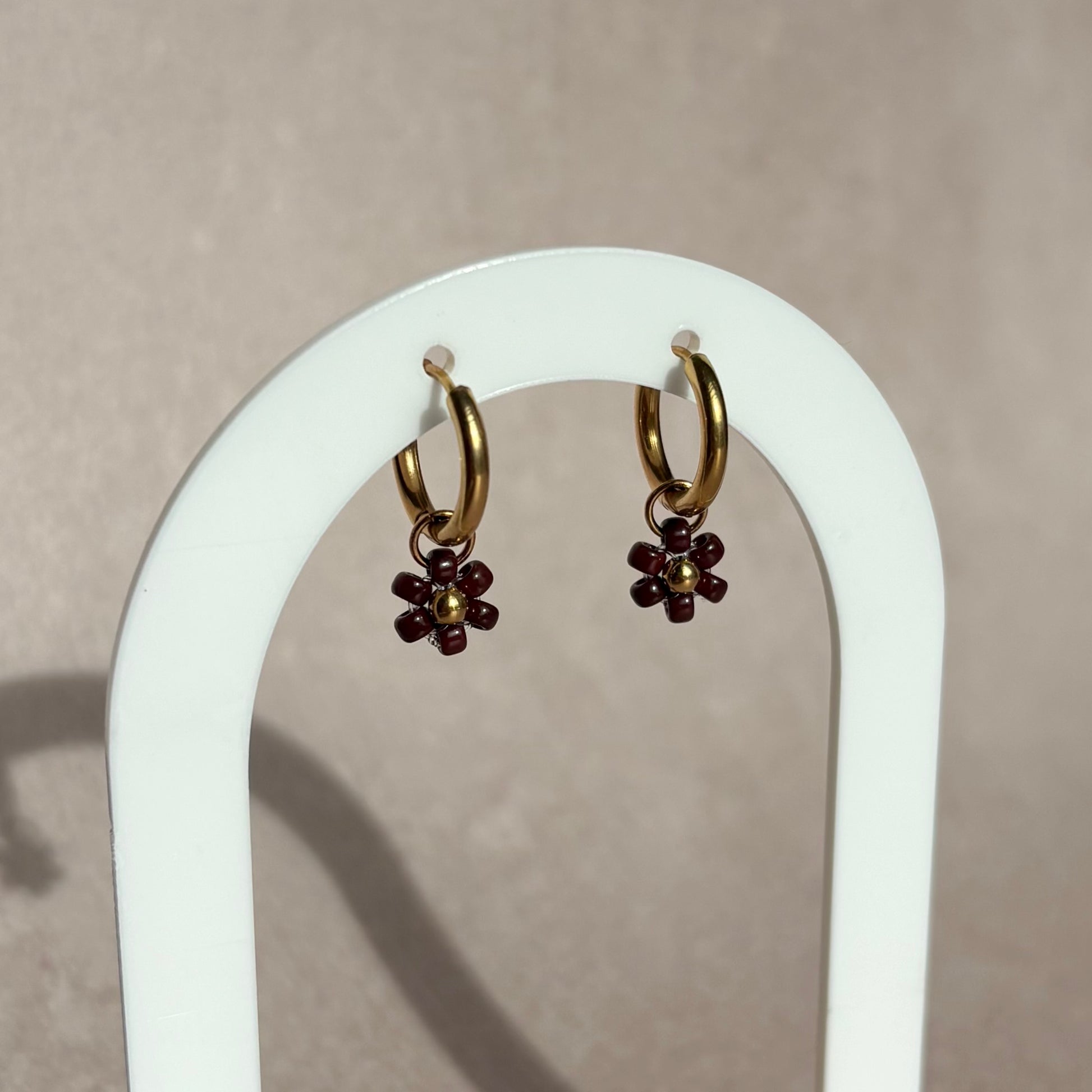 Chaque paire est ornée d’une fleur en perles Miyuki, avec au centre une perle dorée en acier inoxydable qui apporte une touche d’éclat.